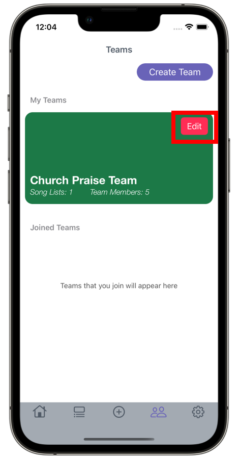 Delete a team by tapping “Edit” on the desired team, and navigate to the bottom of the screen and tap on “Delete Team”.