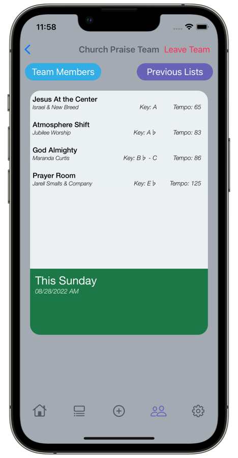 Create a team song list by navigating to the teams tab > select the desired team > and tap on the ‘plus’ gyph. Choose a due date and time for the song list. This would be the date and time that you will be using this song list to perform. Creating a name for the song list is optional.
