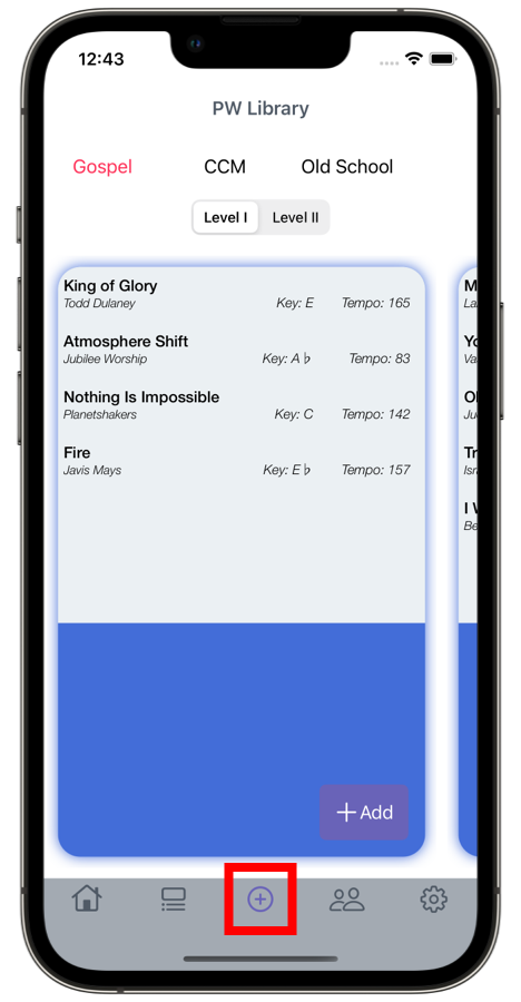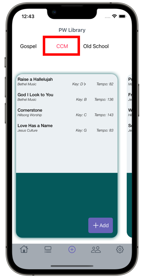 Add a pre-made song list to your personal or team library by navigating to the PW Library tab. Choose the desired category and browse for a song list you would like to add.